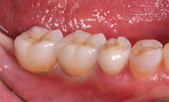 自費治療の場合はセラミックブリッジにすることで天然歯のような審美性にすることができる。 |